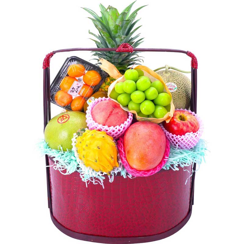 日本蜜瓜 1個 日本鳥取水晶梨 1個 日本特選蘋果 2個 美國精美提子 1包 紐西蘭金奇異果 1個 台灣精選楊桃 1個 泰國三角嘜金柚 1個 馬來西亞火龍果 1個