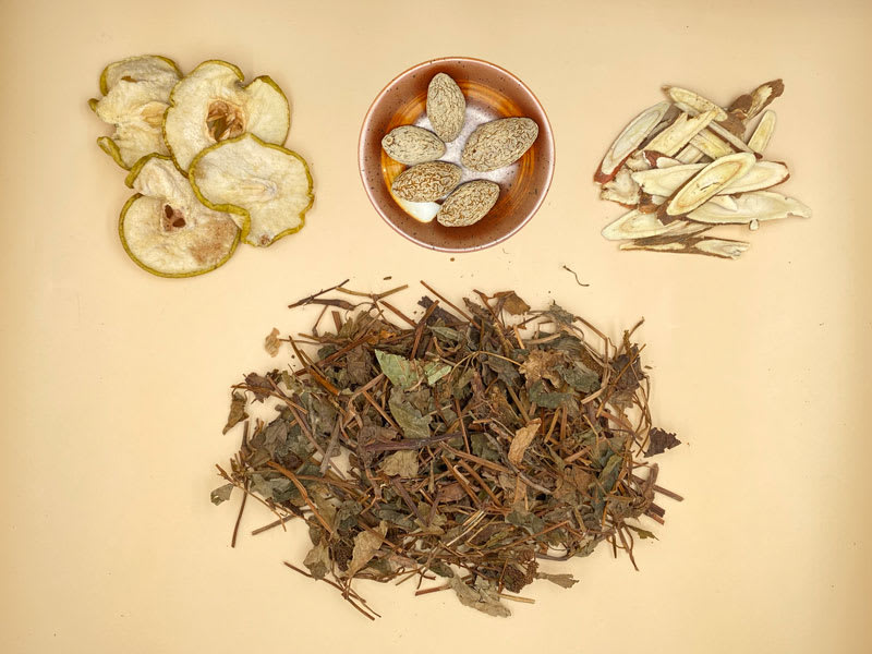 做法:青橄拍鬆, 將甘草、青橄及雪梨乾與4L 清水煮沸後轉小火滾10分鐘,最後加入魚腥草煮沸,放涼後即可飲用。